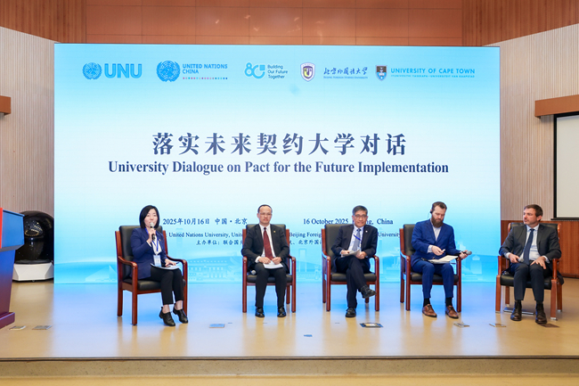 近日,我校应邀参加由联合国大学、联合国驻华系统、北京外国语大学与南非开普敦大学共同主办的“落实未来契约大学对话”活动,并参与《大学实施〈未来契约〉行动计划》启动仪式。帅永副校长与人文社科学部赵宏瑞教授代表学校出席。