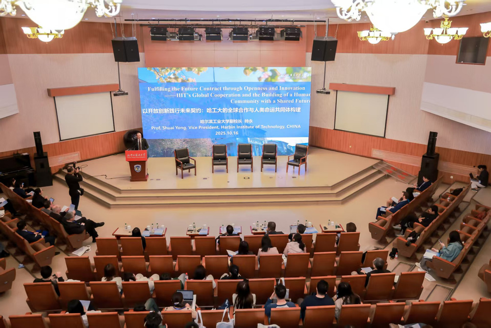 在活动的主旨报告环节,帅永副校长以《以开放创新践行未来契约:哈工大的全球合作与人类命运共同体构建》为题作了分享,系统介绍了学校在航天科技、水环境治理等领域的国际合作成果与经验。